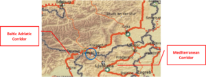 The Karawanks motorway tunnel connects the A2 motorway in Slovenia and the A11 motorway in Austria and is part of the TEN-T comprehensive network, connecting the Baltic-Adriatic and the Mediterranean CNCs (see Figure 2-5). It also connects hubs of the comprehensive and core transport networks (i.e., Villach-Klagenfurt, Ljubljana).