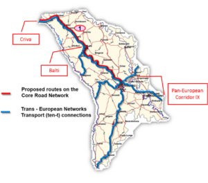 The M-14 crosses the country from the North-Western border with Ukraine’s province of Chernivets’ka to South-Eastern border with Ukraine’s province of Odes’ka and passing through the capital city of Chisinau. In correspondence of Chisinau, the road M-14 intersects the Pan-European Corridor IX. This section of the M-14 is classified as proposed Route 1 on the national core network.