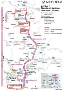 The project concerns the construction of two dual-carriageway sections as a continuation of the A5 North motorway. The two sections involved are Schrick-Poysbrunn and Poysbrunn-state border with Czech Republic (including the bypass of Drasenhofen). The total length of the two sections is 33 km.