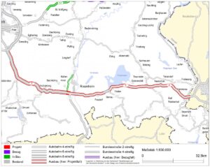 This project regards the widening of the transversal section to 6/8 lanes of the motorway A8 from the South of Munich to the German-Austrian border via Bad Reichenhall, for a total length of 116 km. This section is considered a bottleneck of the Rhine-Danube CNC, leading to congestions and undermining the mobility across a major road infrastructure of Bavaria.